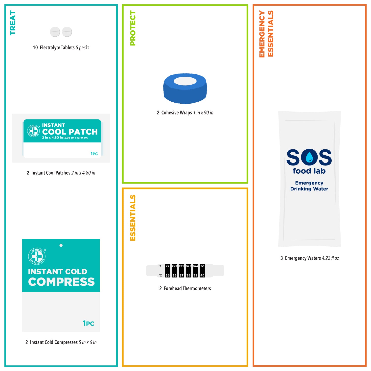 - BEAT THE HEAT: Provides treatments for heat exhaustion, dehydration, bruises, and muscle cramps with 20 pieces of heat reducing solutions